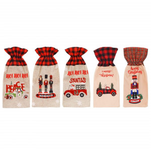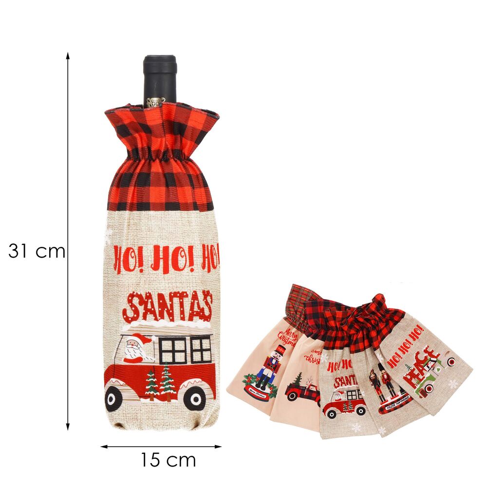 Stylový obal na láhev s vánočním motivem, který dodá každému dárku slavnostní nádech. Má optimální velikost pro většinu lahví a díky stahovací gumičce je jeho uzavření rychlé a pohodlné. Motiv je zasílán náhodně z pěti krásných vánočních vzorů, bez možnosti výběru. Rozměry 15x31 cm, materiál 100% polyester.