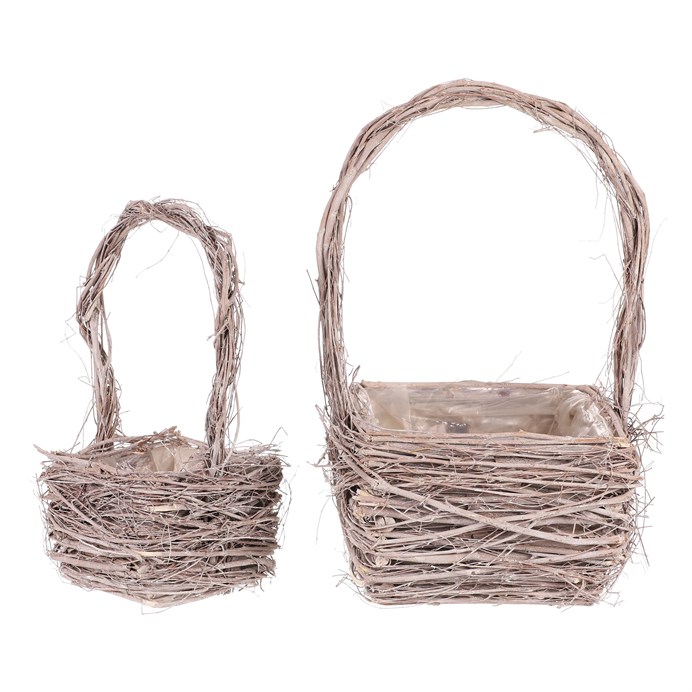 Dotaz na produktProutěné obaly v šedém přírodním odstínu ve tvaru hranatých košíků přináší do vašeho prostoru útulnost a přirozený styl. Jedná se o sadu dvou velikostí, která je ideální pro květiny různých druhů. Důležitou součástí produktu je ochranná igelitová fólie, která zajišťuje udržitelnou vlhkost a zabraňuje prosakování vody. Perfektní volba pro všechny, kdo chtějí své rostliny elegantně vystavit a zachovat jim svou přirozenost.