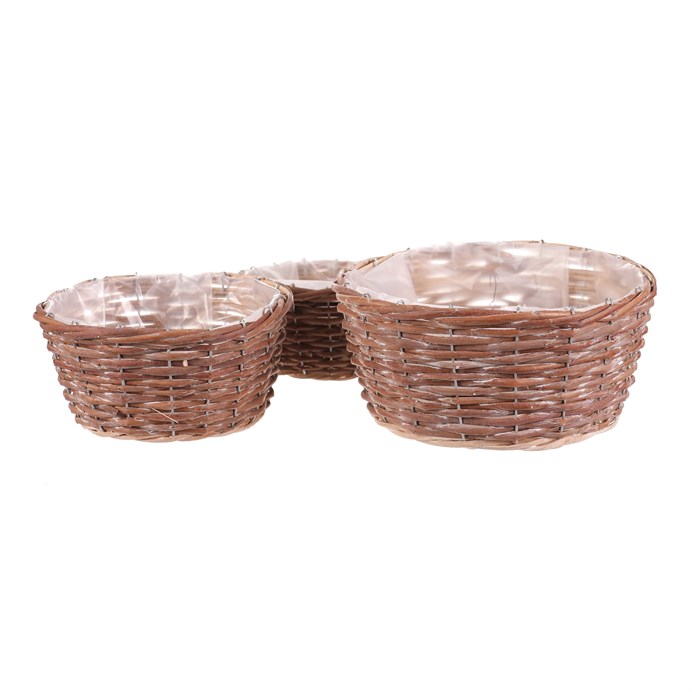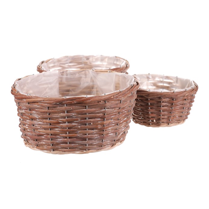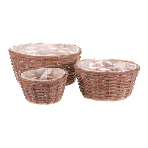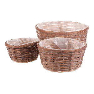Dotaz na produktSada tří kulatých obalů z přírodního proutí nabízí univerzální využití pro květináče i dekorace. Každý obal je opatřen igelitovou vložkou, která chrání před prosakováním vody a usnadňuje údržbu. Přírodní odstíny a ručně pletené provedení dodávají výrobku autentický vzhled vhodný do rustikálních i moderních interiérů. Obaly jsou lehké a snadno přemístitelné, což umožňuje flexibilní aranžmá květin a rostlin. Cena je uvedena za kompletní sadu tří kusů různých velikostí.