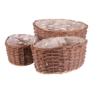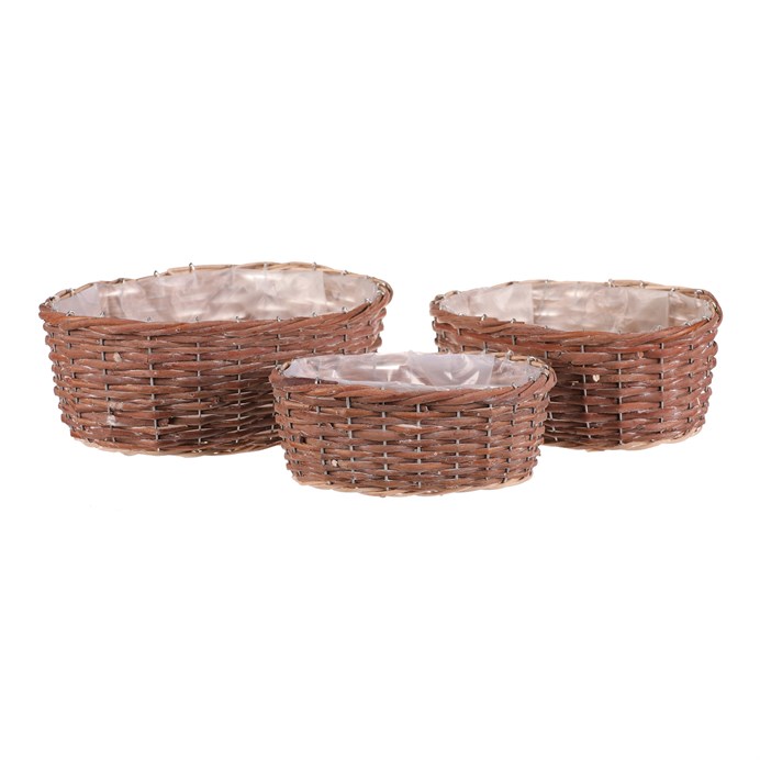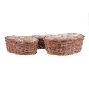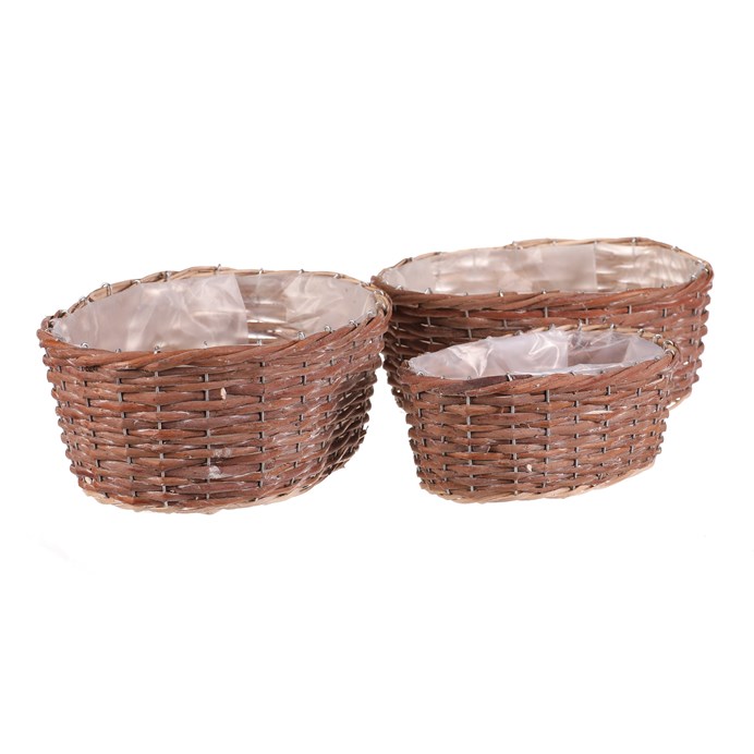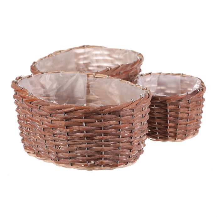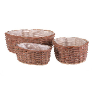 Dotaz na produktSada tří oválných obalů z přírodního proutí nabízí univerzální využití pro květináče či dekorace. Každý obal je vyplněn praktickou igelitovou vložkou, která chrání před prosakováním vody a usnadňuje údržbu. Přírodní odstíny a ručně pletené provedení podtrhují autentický vzhled a přinášejí do interiéru či exteriéru příjemnou atmosféru. Obaly jsou vhodné pro různé velikosti rostlin a díky své lehké konstrukci se snadno přemisťují. Jsou ideální pro aranžmá na terasu, balkon nebo do bytu.
