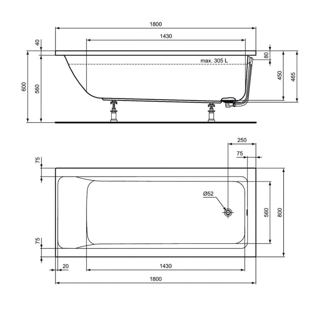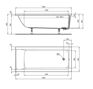 PARAMETRY:Balení: 1 ksHmotnost balení: 24,60  kgDruh výrobku: obdélníková vana Barva popisná: bílá Barva základní: bílá Orientace: levá i pravá Výbava: Bez panelu,nožiček,sifonu Šířka: 180  cmVýška:...