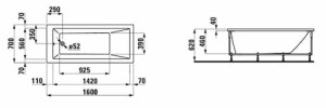 Obdélníková vana Laufen Pro 160x70 cm akrylát levá i pravá H2339510000001