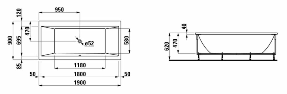 Obdélníková vana Laufen Pro 190x90 cm akrylát H2349510000001