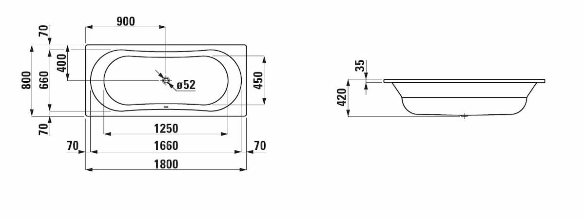 Obdélníková vana Laufen Thallium 180x80 cm smaltovaná ocel levá i pravá H2250900000401