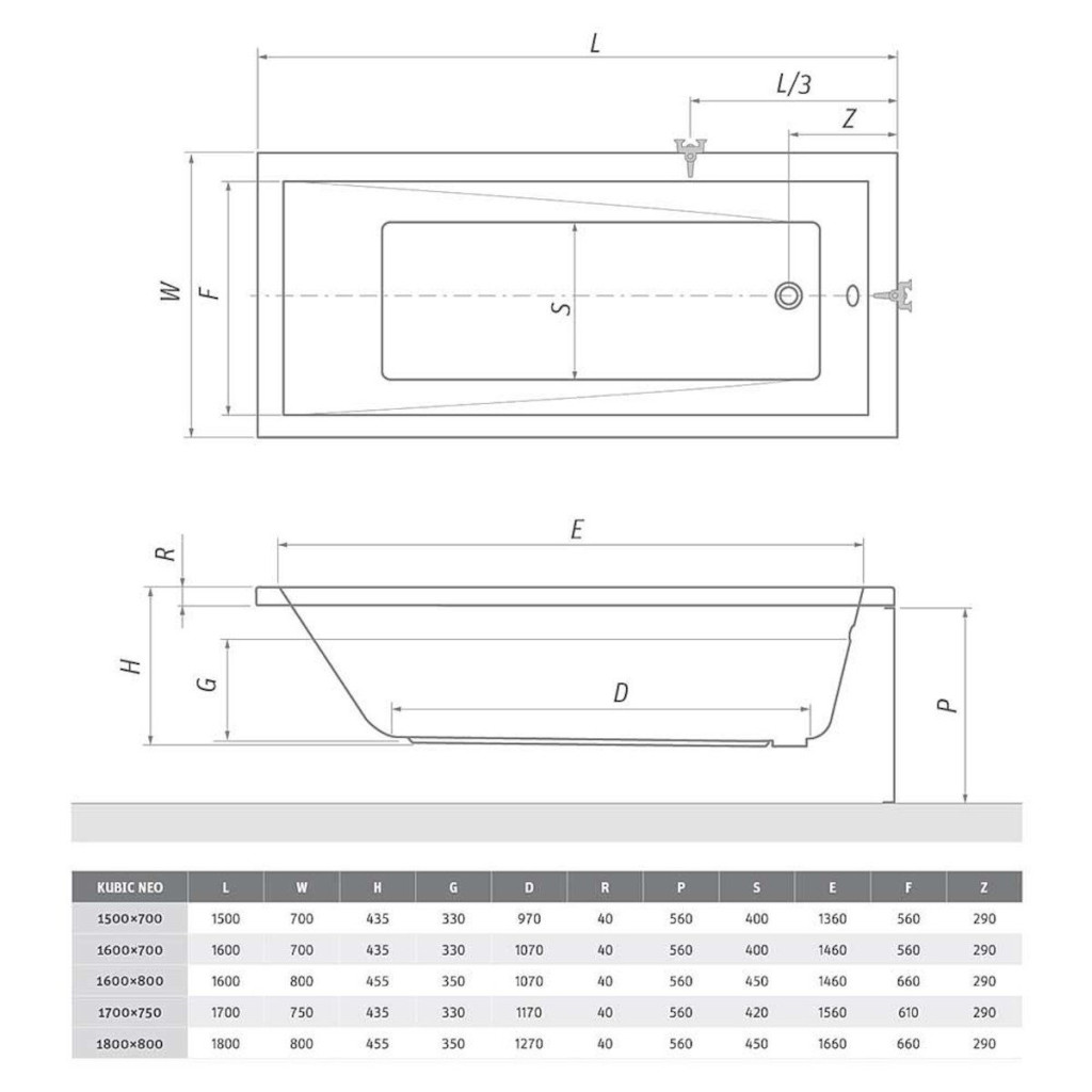 Obdélníková vana Roth Kubic Neo 180x80 cm akrylát levá i pravá 9340000