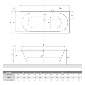 Obdélníková akrylátová vana. Rozměry 160x75, 170x75, 179,5x79,5 cm. Akrylátová vana v klasickém tvaru, která se bude dobře hodit do prostorné koupelny, kde se díky svému symetrickému tvaru může stát...