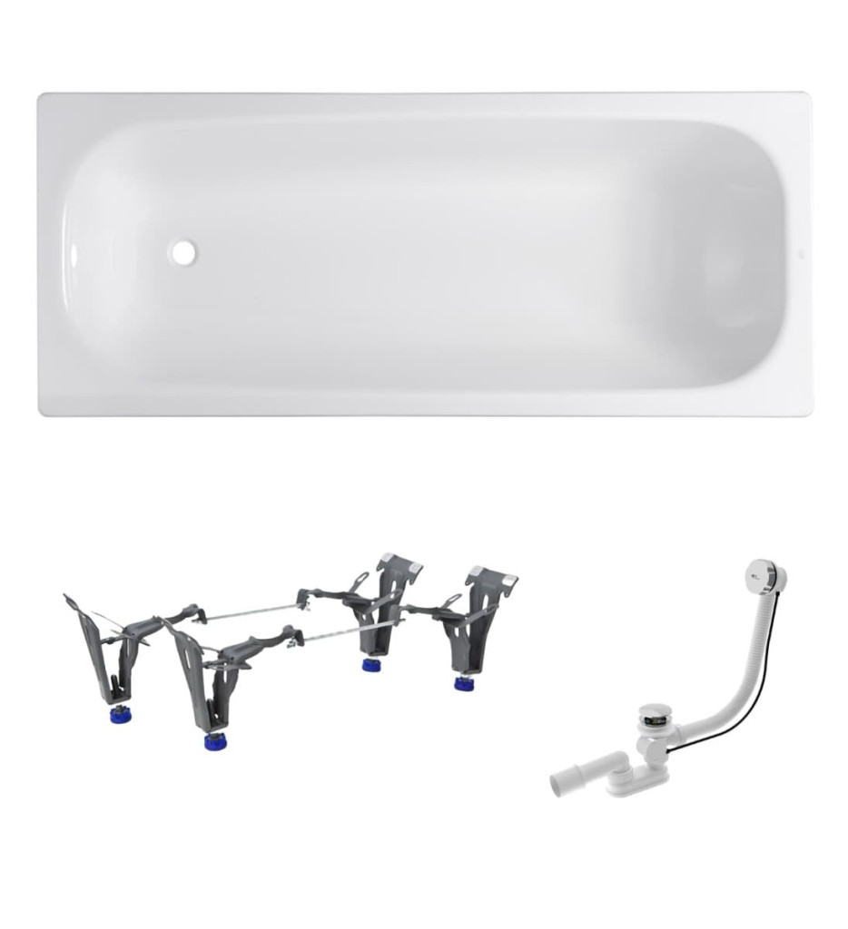 Tento kompletní balíček obsahuje vše, co potřebujete k instalaci vany. Balíček zahrnuje elegantní vanu, stabilní nožičky pro její podporu a vanový automat, který slouž jako odtok vody z vany do odpadu.