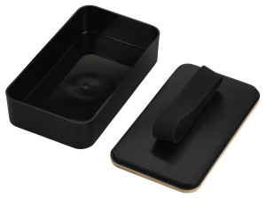 Elegantní obědový box je ideálním řešením pro každodenní přenášení jídla. Vyrobený z kvalitního černého plastu, disponuje praktickým dvoudílným provedením a pevným PP páskem, který zajišťuje bezpečné uzavření. Víko z FSC® certifikovaného bambusu je ozdobeno stylovým gravírováním „Bären Hunger“. Tento kompaktní lunch box je nejen funkční, ale i designově atraktivní. Skvěle se hodí do školy, do práce nebo na výlety.
