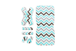 Složení stavebnice: Dwustronna mata do wózka, Poduszka motylek, Ochraniacze na pasy, Pas do poduszki