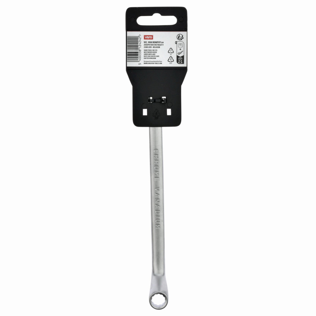 Dotaz na produktTento dvojitý očkový klíč KRTH30303 z naší řady Kreator má délku 150 mm a je vyroben z vysoce kvalitní chrom-vanadiového slitiny. Osazené kroužky zajišťují efektivnější přenos vyvíjené síly. Konce mají otvory různých velikostí. Jeden má velikost 10 a druhý 11 mm.