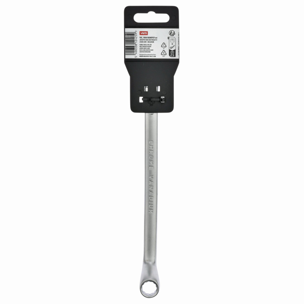 Dotaz na produktTento dvojitý očkový klíč KRTH30304 z naší řady Kreator má délku 165 mm a je vyroben z vysoce kvalitní chrom-vanadiového slitiny. Osazené kroužky zajišťují efektivnější přenos vyvíjené síly. Konce mají otvory různých velikostí. Jeden má velikost 12 a druhý 13 mm.