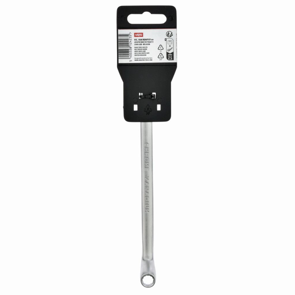 Dotaz na produktTento dvojitý očkový klíč KRTH30302 z naší řady Kreator má délku 130 mm a je vyroben z vysoce kvalitní chrom-vanadiového slitiny. Osazené kroužky zajišťují efektivnější přenos vyvíjené síly. Konce mají otvory různých velikostí. Jeden má velikost 8 a druhý 9 mm.
