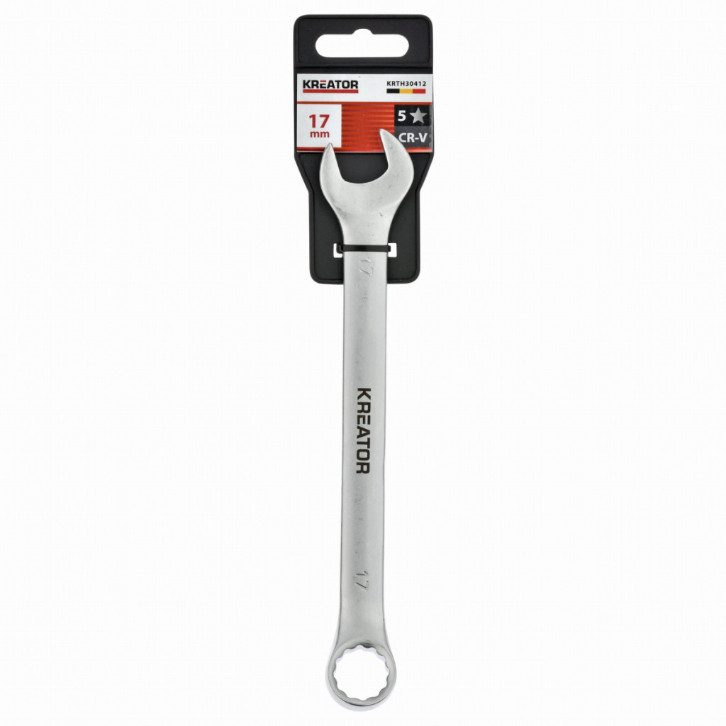 Dotaz na produktTento kombinovaný očko / otevřený klíč KRTH30412 od Kreator je vyroben z robustní chrom-vanadiové slitiny. Eliptický tvar dříku zajišťuje lepší přenos síly. Je dlouhý 205 mm a má průměr 17 mm.