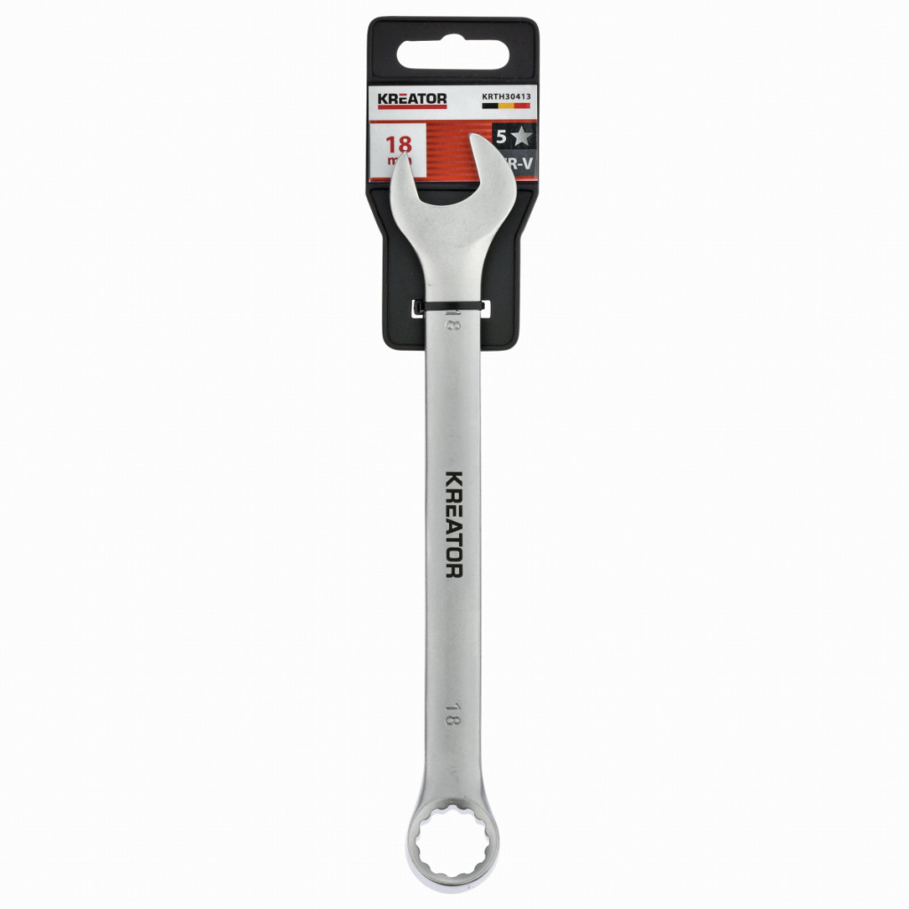 Dotaz na produktTento kombinovaný očko / otevřený klíč KRTH30413 od Kreator je vyroben z robustní chrom-vanadiové slitiny. Eliptický tvar dříku zajišťuje lepší přenos síly. Je dlouhý 215 mm a má průměr 18 mm.