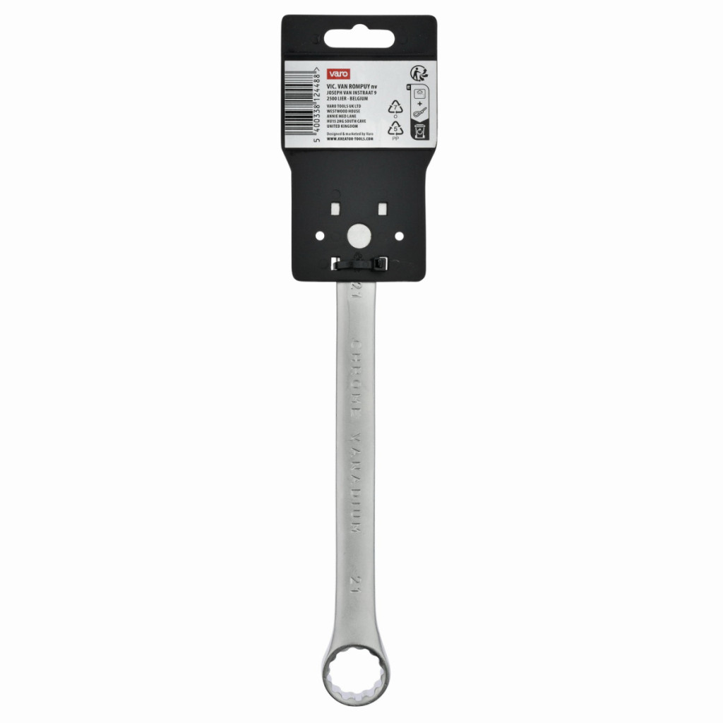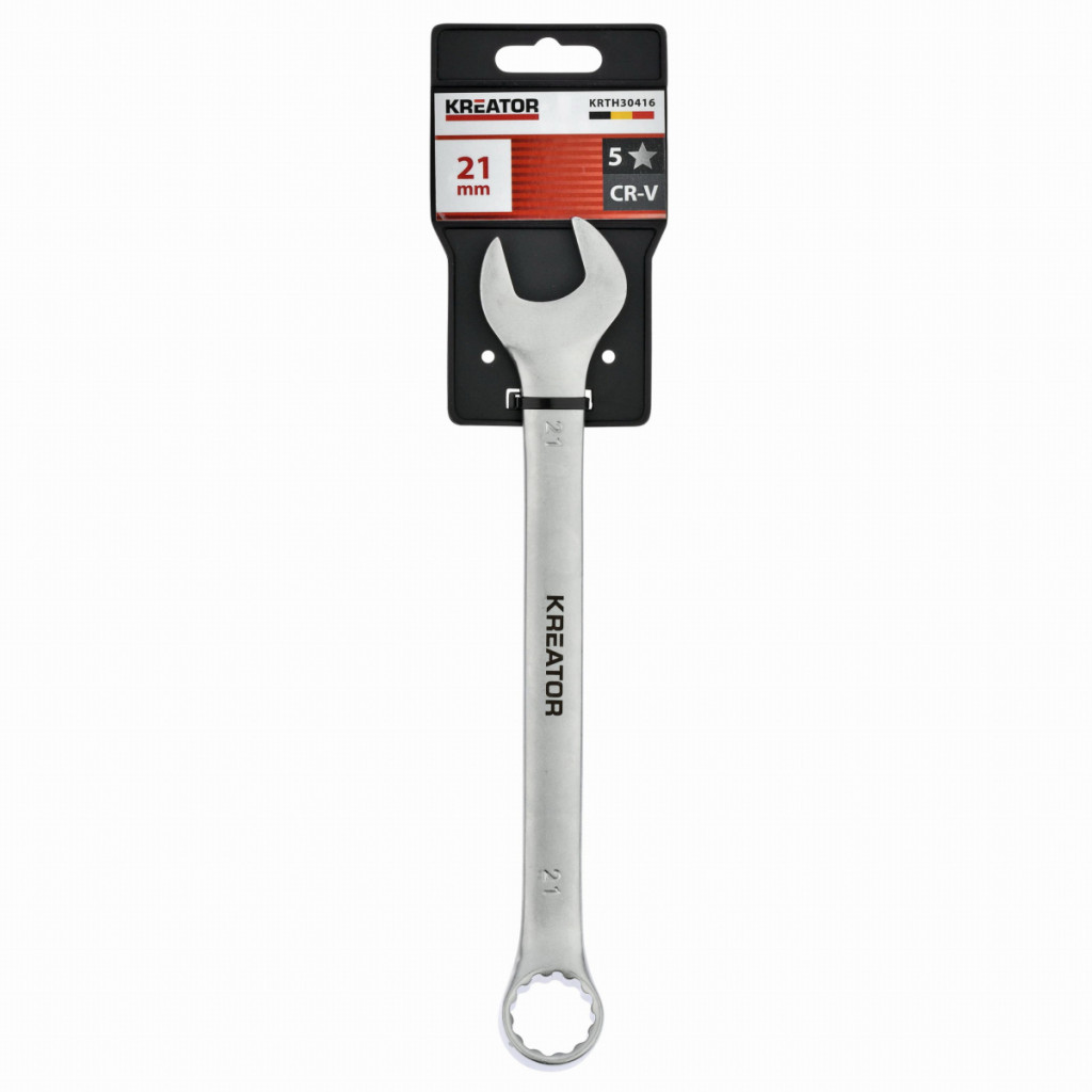 Dotaz na produktTento kombinovaný očko / otevřený klíč KRTH30416 od Kreator je vyroben z robustní chrom-vanadiové slitiny. Eliptický tvar dříku zajišťuje lepší přenos síly. Je dlouhý 245 mm a má průměr 21 mm.
