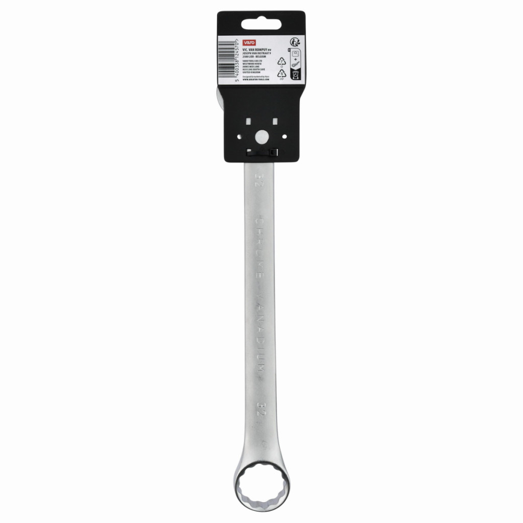 Dotaz na produktTento kombinovaný očko / otevřený klíč KRTH30425 od Kreator je vyroben z robustní chrom-vanadiové slitiny. Eliptický tvar dříku zajišťuje lepší přenos síly. Je dlouhý 355 mm a má průměr 32 mm.