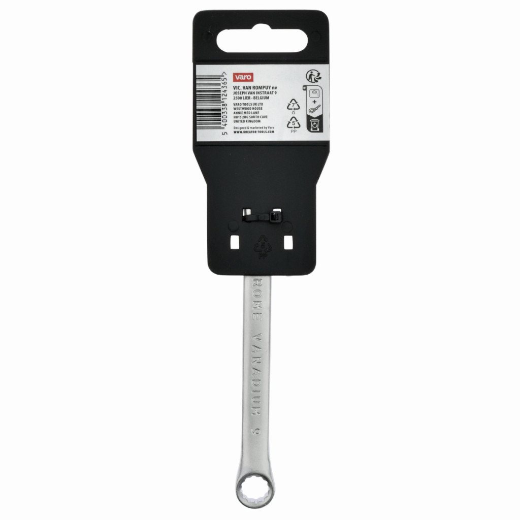 Dotaz na produktTento kombinovaný očko / otevřený klíč KRTH30404 od Kreator je vyroben z robustní chrom-vanadiové slitiny. Eliptický tvar dříku zajišťuje lepší přenos síly. Je dlouhý 130 mm a má průměr 9 mm.
