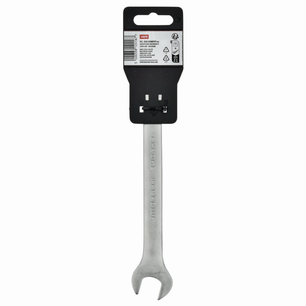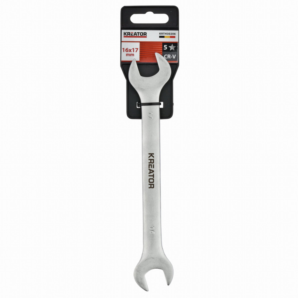 Dotaz na produktTento dvojitý otevřený klíč KRTH30206 značky Kreator má délku 190 mm a je vyroben z vysoce kvalitního chrom-vanadiového slitiny. Konce mají otvory různých velikostí. Jeden je široký 16 mm a druhý 17 mm.