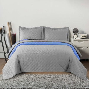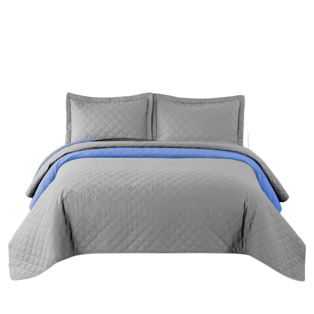 Oboustranný prošívaný přehoz Inez světle šedo-modrý