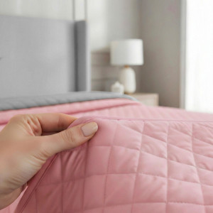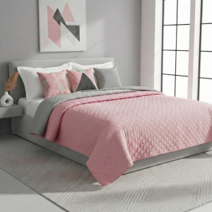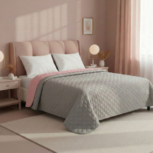 ÚvodLožniceTextil do ložnicePřehozyOboustranný prošívaný přehoz Inez světle šedo-růžový