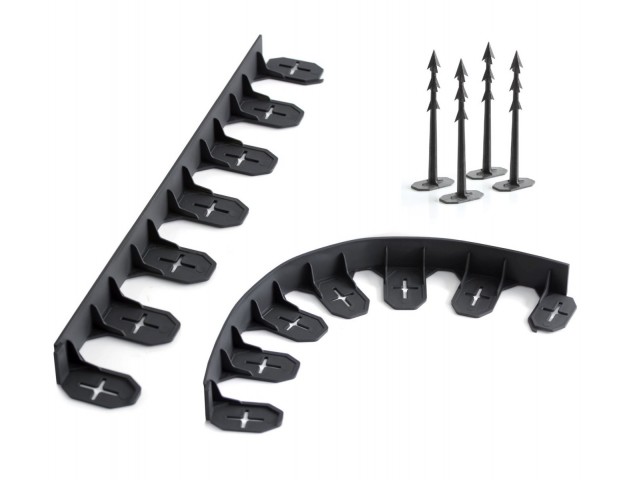 Obrubník Border, je určen k oddělení různých povrchů na zahradě, k ohraničení stromů a keřů v trávníku, k vytvoření obruby zahradního chodníku apod...., plastový zahradní obrubník vytváří pevnou, téměř neznatelnou hranu, kterou si tvarem přizpůsobíte svým požadavkům, obrubník upevňujeme do půdy pomocí přiložených hřebů, celková délka 4,8 metrů, výška 4,5 cm, hloubka 8,4 cm, v balení 8 d´ílů o délce 60 cm a 24 kotvících kolíků.