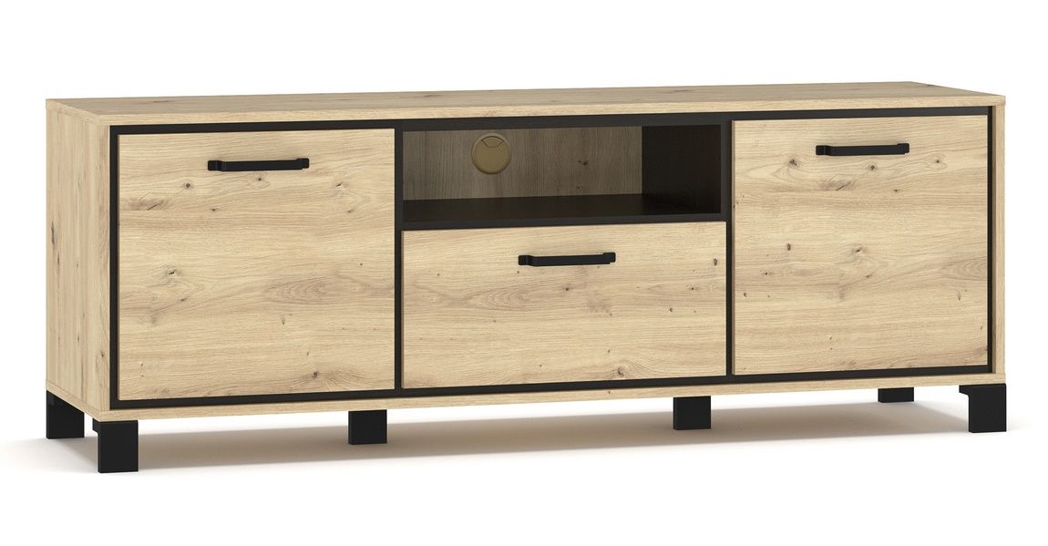 Dotaz na produkt Na splátky ještě dnesObývací sestava v moderním provedení dekoru přírodního dřeva. Nábytek je vyroben z kvalitní LTD desky v barevné kombinaci dub artisan/wenge tmavá. Sestava se skládá z (ŠxVxH): komoda čtyřdveřová (117,4 x 157,6 x 41,2 cm), televizní stolek (153,6 x 57,8 x 41,2 cm) a police (140 x 29,6 x 24,8 cm). Dodáváme v demontovaném stavu.