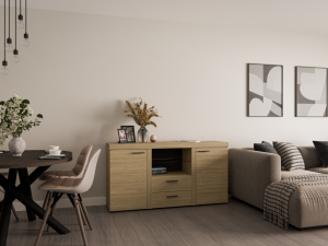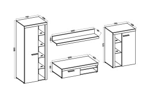 Dotaz na produkt Na splátky ještě dnesObývací stěna Rizo patří mezi oblíbené modely moderního nábytku. Nabízí dostatek úložného prostoru a je vhodná i do menších pokojů. Stěna je vyrobena z lamina, které je odolné a snadné na údržbu. Ke stěně nabízíme i několik typů komod ve stejném provedení. Všechny prvky této sestavy jsou dodávány v demontu. Součástí je montážní plánek včetně všech potřebných spojovacích materiálů. Cena je uvedena za bytovou stěnu vyobrazenou na úvodní fotografii, bez komod, doplňků a dekorací. LED osvětlení není v ceně sestavy.
