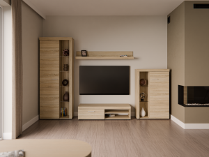 Dotaz na produkt Na splátky ještě dnesObývací stěna Rizo patří mezi oblíbené modely moderního nábytku. Nabízí dostatek úložného prostoru a je vhodná i do menších pokojů. Stěna je vyrobena z lamina, které je odolné a snadné na údržbu. Ke stěně nabízíme i několik typů komod ve stejném provedení. Všechny prvky této sestavy jsou dodávány v demontu. Součástí je montážní plánek včetně všech potřebných spojovacích materiálů. Cena je uvedena za bytovou stěnu vyobrazenou na úvodní fotografii, bez komod, doplňků a dekorací. LED osvětlení není v ceně sestavy.