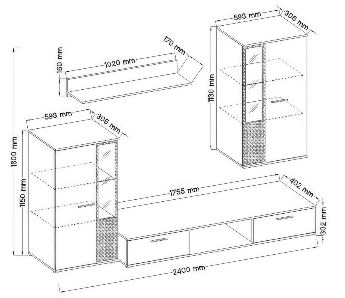 Dotaz na produkt Na splátky ještě dnesModerní obývací stěna, která si zakládá na nejnovějších trendech bydlení. Nábytek je vyroben z kvalitní desky LTD v barevném provedení bílá/dub artisan. Sestava se skládá ze dvou vitrín, televizního stolku a police a prodává se pouze jako sestava. Prostor pro televizi je - výška 91 cm, šířka 132 cm. Dodáváme v demontovaném stavu.