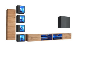 Obývací stěna SWITCH XXVISpecifikace:materiál: MDF barva: dub wotan a dub wotan / grafit matná a grafit leskotevírání systémem Push-clickLED osvětlení v ceně produktudodává se v demontuObývací stěna...