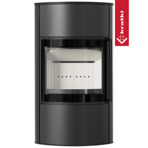 ÚvodKrby a krbová kamnaKrbová kamnaOcelová kamna na dřevo KRATKI BJORN/W Ø 150 8 kW černá Thermotec samozavírací