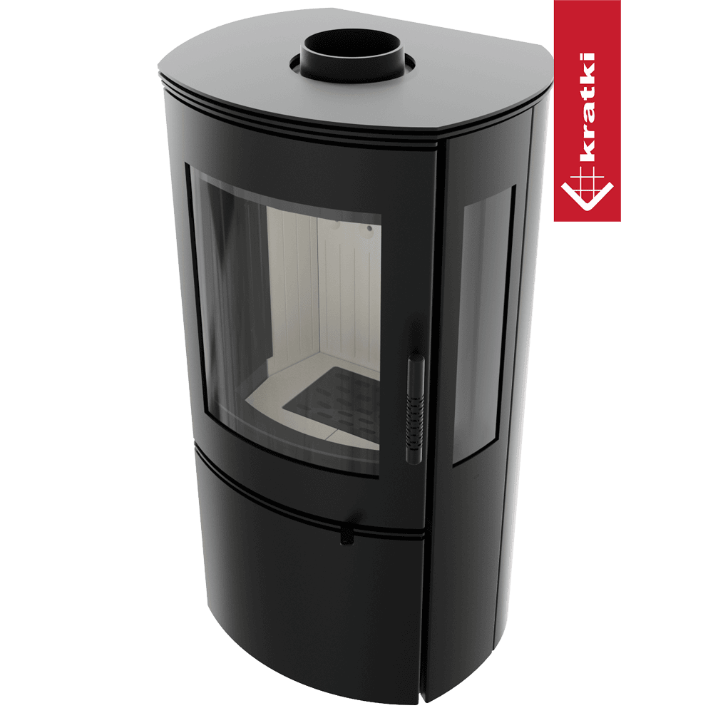 Ocelová kamna na dřevo KRATKI FALCON VIEW Ø 150 10 kW samozavírací