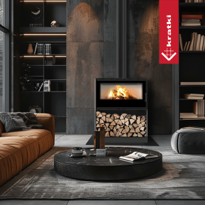 ÚvodKrby a krbová kamnaKrbová kamnaOcelová kamna na dřevo KRATKI KARI 95 Ø 180 14 kW prostor pro dřevo černá Thermotec samozavírací