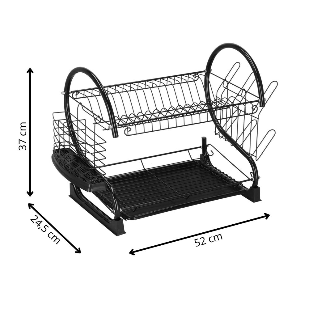 Odkapávač na nádobí 2 patra 52x24,5 cm SPRINGOS RINSERO černý je praktickým a elegantním doplňkem každé kuchyně, který zajišťuje efektivní sušení nádobí.