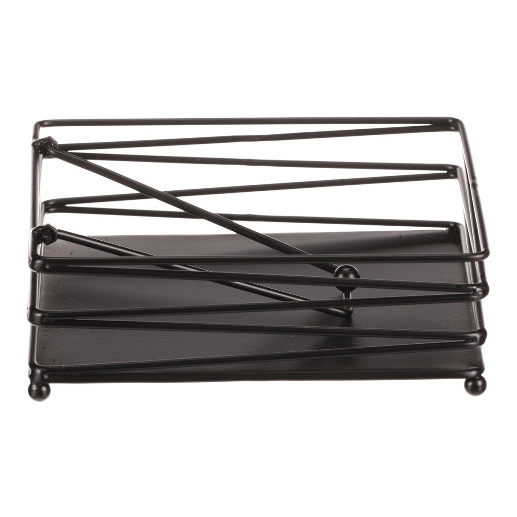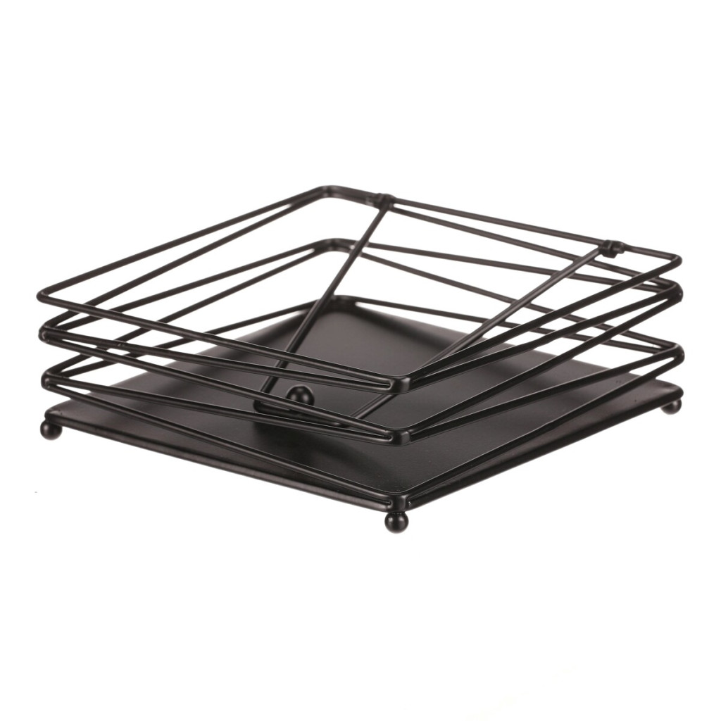 Dotaz na produktČerný kovový odkladač na ubrousky v čtvercovém provedení zaujme svým elegantním designem s jemnými drátky po stranách. Praktický a stylový doplněk, který se hodí do kuchyně i jídelny. Skvělá volba pro každou domácnost.