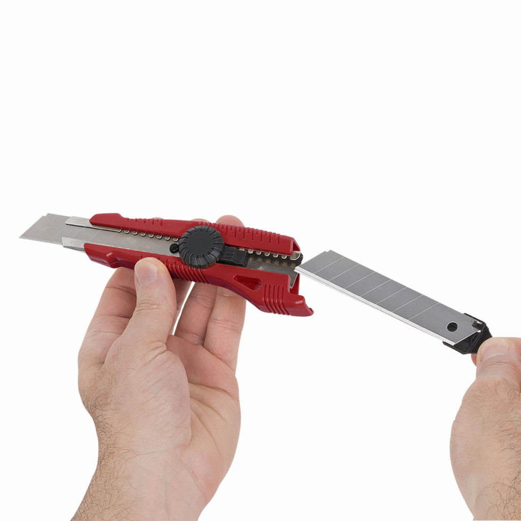 Dotaz na produktS tímto ostrým odlamovacím nožem KRTH00104 od Kreator snadno stříháte papír, karton, tapety, pásky a další. Zaoblený tvar rukojeti umožňuje pohodlný úchop. Pro vaši bezpečnost se čepel po použití okamžitě zasune. Čepel o délce 100 mm a šířce 18 mm můžete zaaretovat pomocí zajišťovacího mechanismu. Když je čas na novou, ostřejší čepel, můžete jednoduše odlomit tupou část pomocí odlamovacího mechanismu. Nůž se navíc dodává s jednou náhradní čepelí a v duté rukojeti můžete uložit až tři náhradní čepele.