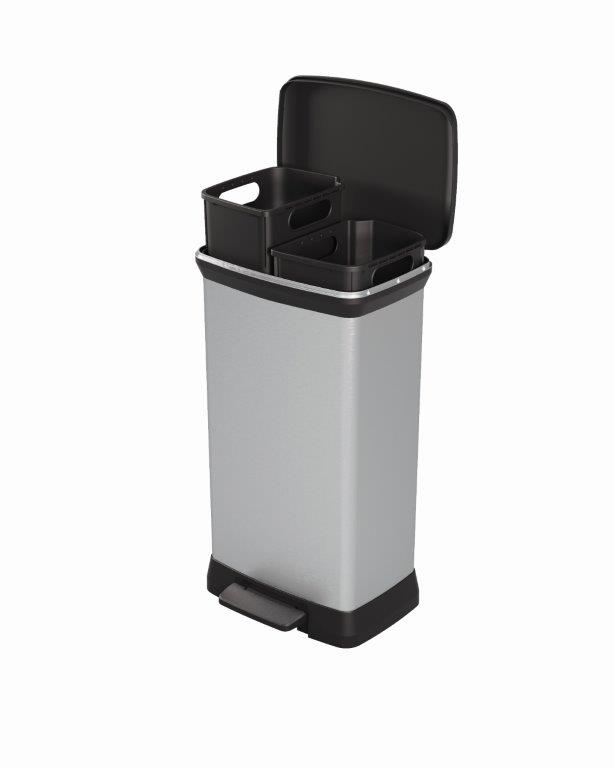 Dotaz na produkt Na splátky ještě dnesPořiďte si do své domácnosti odpadkový koš Curver Deco Bin Duo. Uvnitř se nachází 2 nádoby. Každá má objem 23 l. Využijete je pro třídění odpadu. Díky nášlapnému systému nemusíte při vyhazování sahat na koš rukama. Jednoduše sešlápnete pedál, aby se víko otevřelo. Zajistíte si tím hygieničtější používání koše.