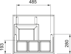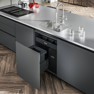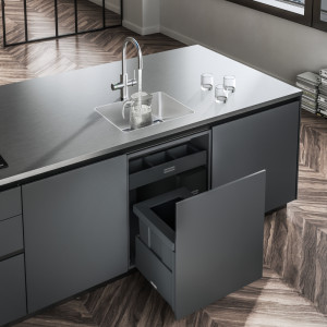 Dotaz na produkt Na splátky ještě dnesČelní výsuv. Spodní skříňka 600 mm. Barva černá.1× 35 l. Výsuvná zásuvka nad košem v ceně koše. Součástí koše je plnovýsuv s tlumením, které zaručuje tichý dojezd. (Výsuv od firmy GRASS). Koš je určený pro kombinaci s baterií Mythos Water Hub.