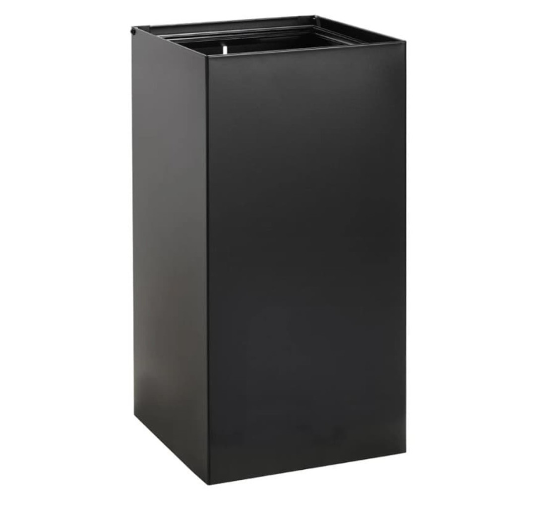 PARAMETRY:Druh výrobku: odpadkový koš Barva základní: černá Design: hranatý Typ: nástěnný Objem: 25 lŠířka: 25  cmVýška: 50  cmHloubka: 25  cmSérie: Hotelové vybavení Značka: Bemeta Způsob montáže:...