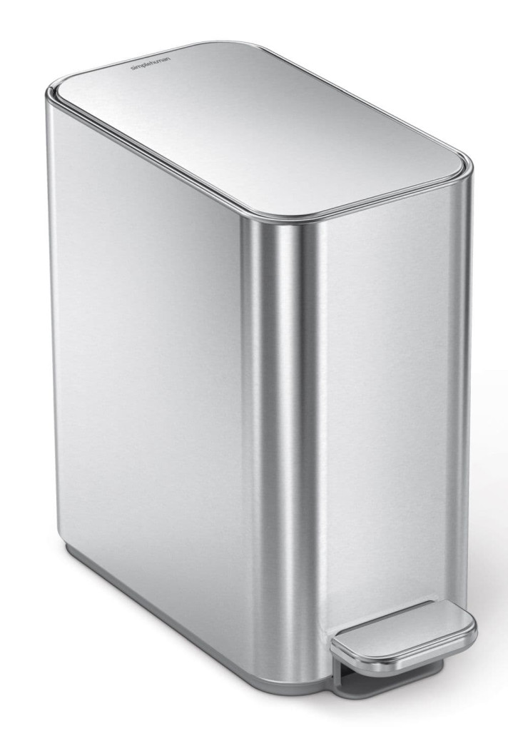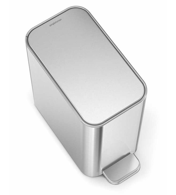 Dotaz na produkt Na splátky ještě dnesPedálový koš Simplehuman s velkorysou kapacitou je díky svému útlému designu ideální pro umístění do koupelny nebo jiných prostorově skoupých místností. Vzhledem k elegantnímu zpracování pantů na vnitřní straně, můžete koš umístit přímo ke stěně, aniž by vznikla mezera nebo docházelo k poničení zdi.