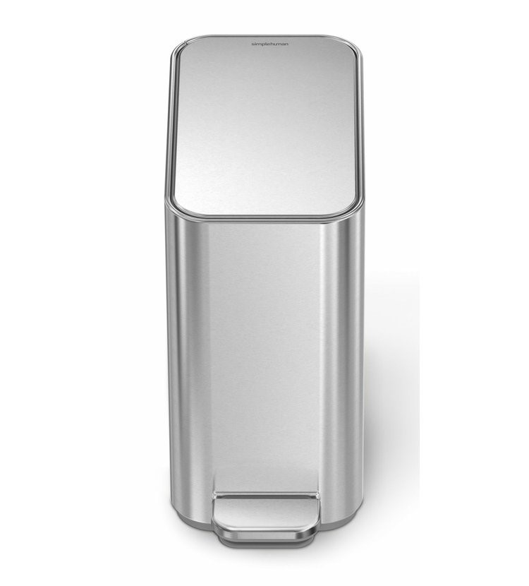 Odolný pedál je navržen tak, aby vydržel více než 150 000 sešlápnutí, což představuje více než 20 otevření denně po dobu 20 let. Patentovaná technologie Simplehuman zajišťuje pomalý pohyb víka a tiché zavírání.