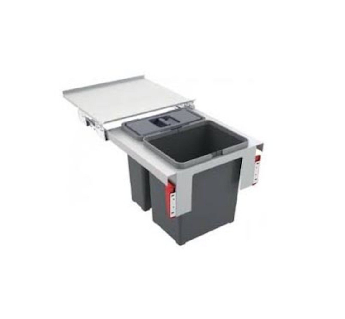 Čelní výsuvMin. montážní prostor: 412 × 399 × 375 mmObjem: 1 × 12 l, 1 × 18 lTřídění odpadků: DvoudruhovéBarva: Šedá2 Koše1 × Víko na 12 l koš (133.0200.695) v ceně košeKovová police nad košem v ceně...
