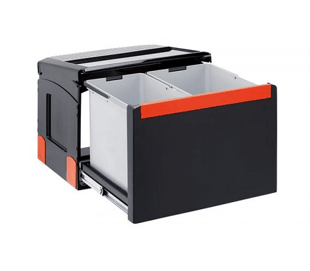 Ruční výsuvMin. montážní prostor: 438 × 330 × 345 mmObjem: 1 × 14 l, 2 × 8 lTřídění odpadků: TřídruhovéBarva: Černá/ŠedáPARAMETRY:Hmotnost balení: 1,00  kgDruh výrobku: odpadkový koš, sorter Barva...