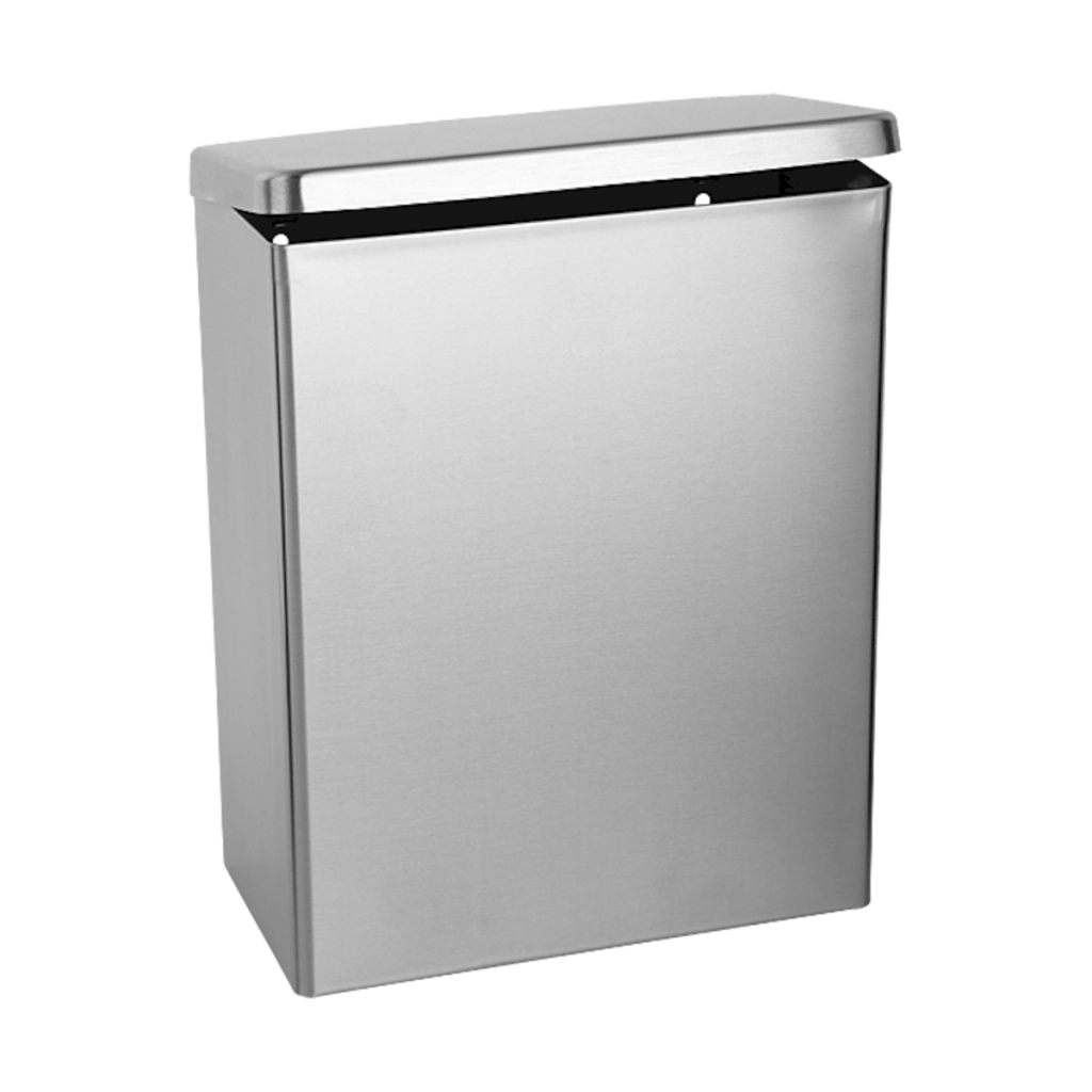Dotaz na produkt Na splátky ještě dnesPraktický nerezový závěsný odpadkový koš s poklopem, na hygienické potřeby, o objemu 4,5 l, rozměru 192 x 97 x 253 mm, s matným povrchem od známé společnosti Sanela.