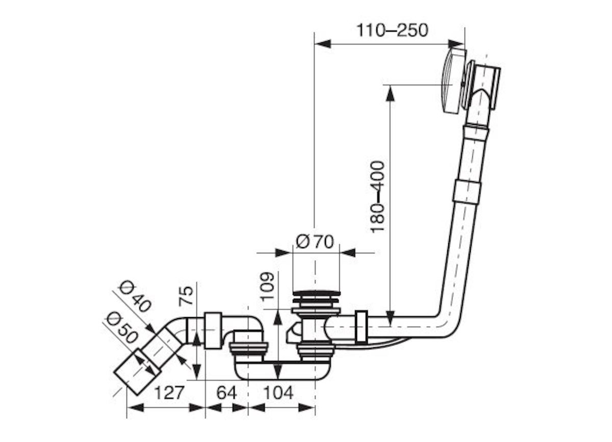 PARAMETRY:Balení: 1 ksHmotnost balení: 0,30  kgDruh výrobku: vanový sifon Značka: Ideal Standard