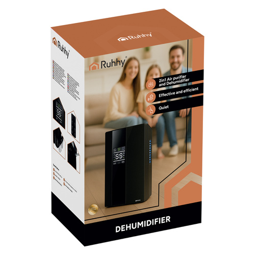 Dotaz na produkt Na splátky ještě dnesPečovat o čistý, suchý a čerstvý vzduch ve vaší domácnosti díky zařízení 2 v 1. RUHHY Tato kombinace odvlhčovače a čističky vzduchu účinně odstraňuje přebytečnou vlhkost a zároveň pomáhá osvěžit místnost, odstraňuje dusno a zlepšuje kvalitu dýchání. Je tichá, energeticky úsporná, s dotykovou obrazovkou, dálkovým ovládáním a inteligentní regulací vlhkosti, takže je ideální do koupelen, kuchyní a ložnic. Funguje automaticky, přesně podle potřeby.