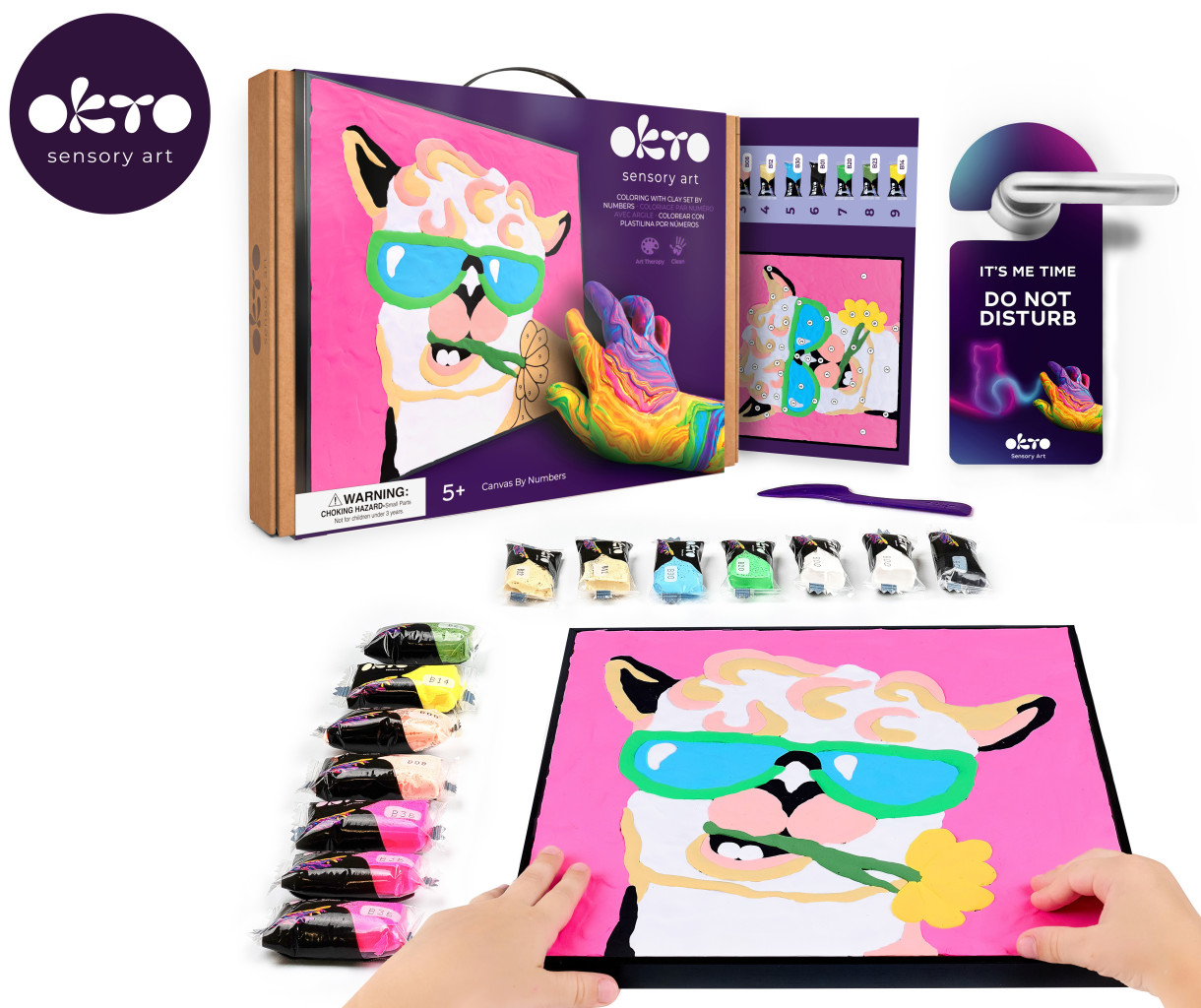 Dotaz na produktOKTO Malování hmotou podle čísel "Lama". Velikost plátna 29x29 cm. Obsah balení - plátno, obrázkový návod, modelovací nástroj, sada barevých tvarovacích směsí 14 ks.