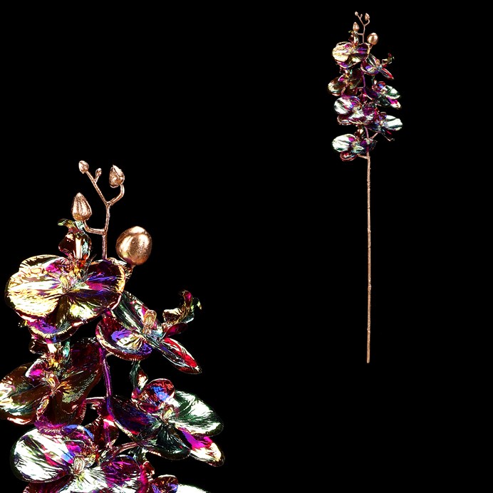 Dotaz na produkt Na splátky ještě dnesUmělá hortenzie s pozlaceným stonkem a lístky okouzlí svým pestrobarevným květem. Její plastové okvětní lístky mění své barvy podle úhlu pohledu. Elegantní a působivá dekorace, která dodá výzdobám šmrnc a zůstane stejně krásná napořád.