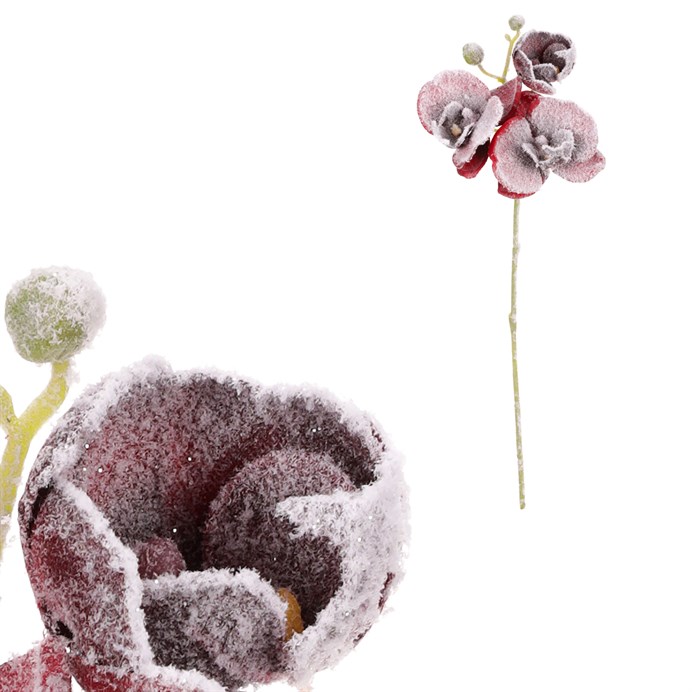 Dotaz na produktRádi byste osvěžili vaši vánoční výzdobu novou květinovou dekorací, která vypadá působivě, dlouho vydrží a zároveň je svým barevným pojetím vhodná pro takové období? Elegantním řešením bude právě zasněžená orchidej v bordó barvě květů, která obohatí sváteční interiér svým originálním provedením a dekorem. Je skvělé, že tato nádherná umělá rostlina nikdy neuvadne a může přinášet potěšení svým půvabem ve stejné intenzitě každý rok. Nechte ji vyniknout třeba v krásné váze na svátečně prostřeném stole, či jiném viditelném místě, kde bude vynikat a dělat radost vám i vašim návštěvníkům. Naše nabídka zahrnuje mnoho dalších umělých květin v závislosti na druhu a barvě, což umožňuje nepřeberné množství variant pro aranžování, a tudíž je jen na fantazii a vkusu každého z nás jaké si vybere.