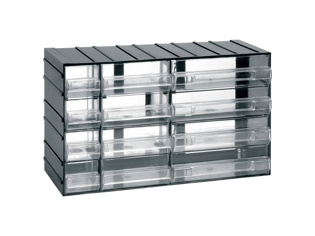 Zásuvky jsou plně výsuvné, průhledné, aby byl sortiment uvnitř rychle rozpoznán a navíc, je každá zásuvka opatřena prostorem na umístění popisu.